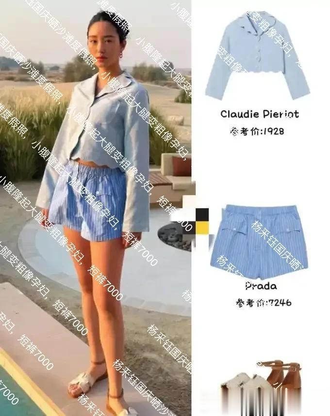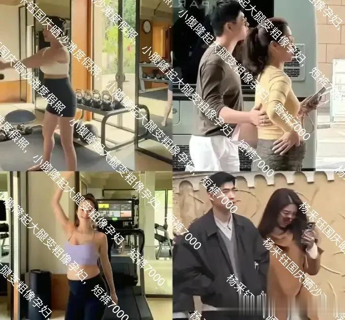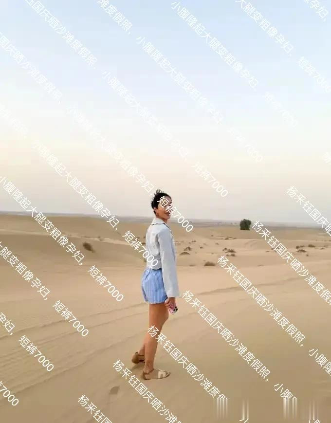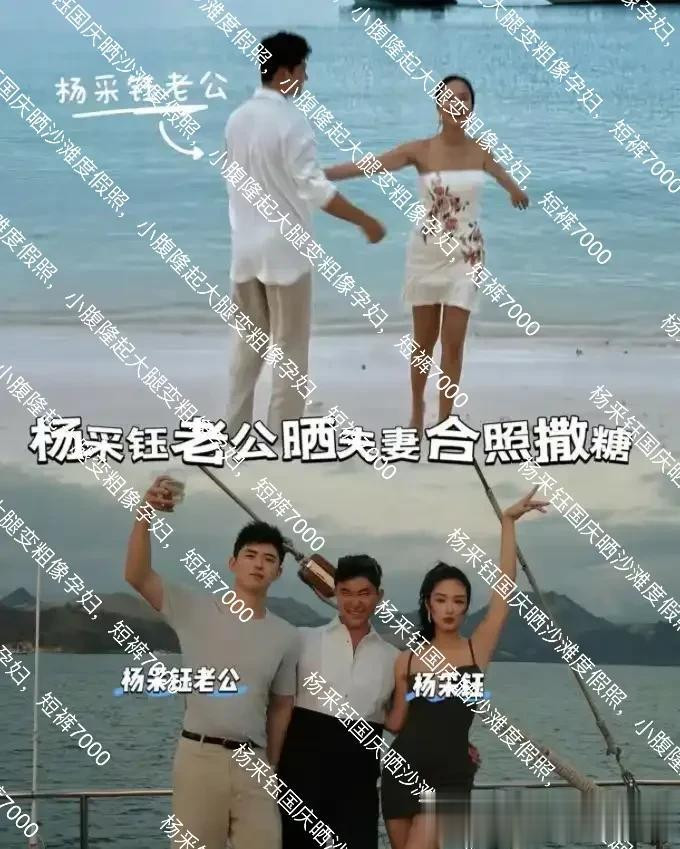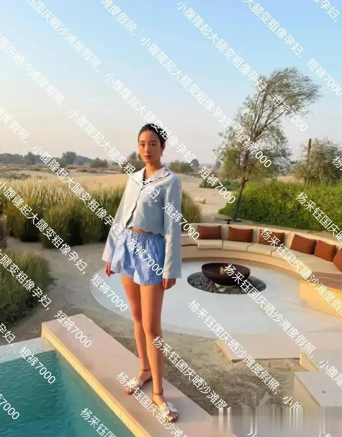 杨釆钰国庆晒沙滩度假照, 小腹隆起大腿变粗像孕妇, 短裤7000奢侈